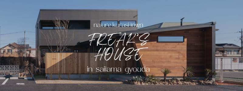 家族と仲間、そして自然と「つながる」アメリカンローカルハウスを体感。 人気セレクトショップ〈FREAK'S STORE〉と住宅ブランド〈LIFE LABEL〉がコラボして生まれた《FREAK'S HOUSE(フリークスハウス)》が、nature kurasi town(ナチュレクラシタウン)の一角に登場。 平屋と2階建て、ふたつの建物をひとつにしたような独特のフォルムが印象的。室内と屋外の境界をなくし、庭とリビングがひとつながりになったような開放的な空間が広がります。面積以上のゆとりを感じられるデザインと、ヴィンテージテイストのインテリアはまさに“ワクワクが止まらない”住まい。 モデルハウス内では、アメリカンローカルスタイルにぴったりな雑貨や家具も展示・販売中。併設の《calm smoothie&cafe》でドリンクやフードを楽しみながら、他のモデルハウスの見学もできます。JR行田駅から徒歩7分、国道17号線沿いで駐車場も完備。家族や友人とランチがてら、ぜひ気軽に訪れてみてください。