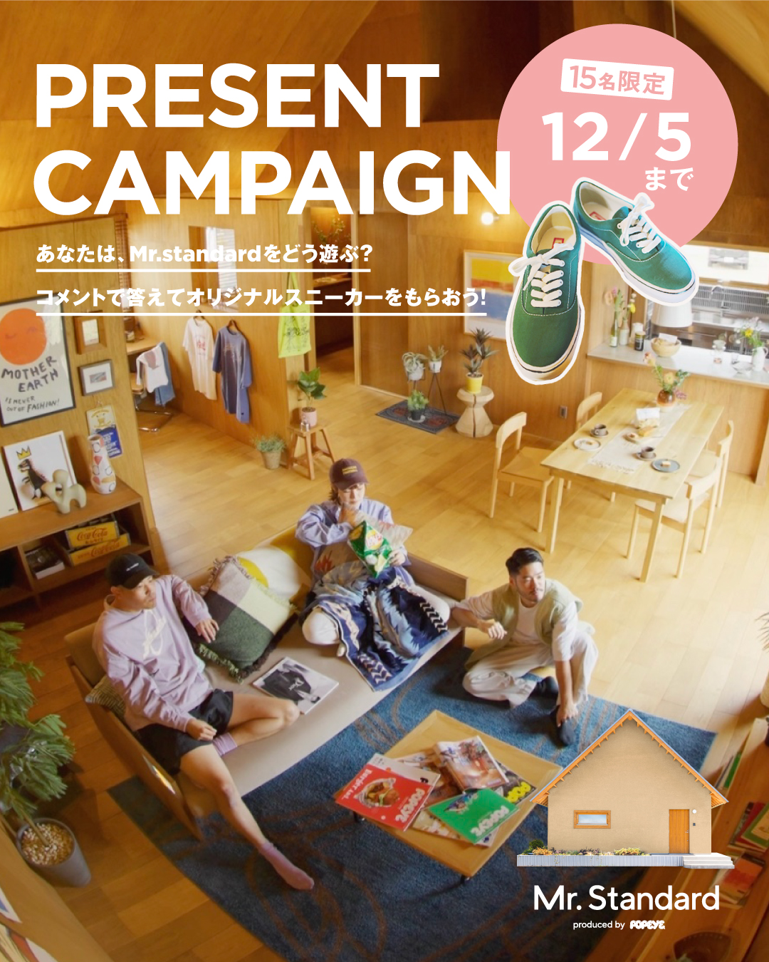 LIFE LABEL公式Instagramでキャンペーンを実施中。 投稿にコメントすると、抽選で 「Mr.Standard オリジナルスニーカー」 を15名様にプレゼント。 応募期間は2025年12月5日まで!