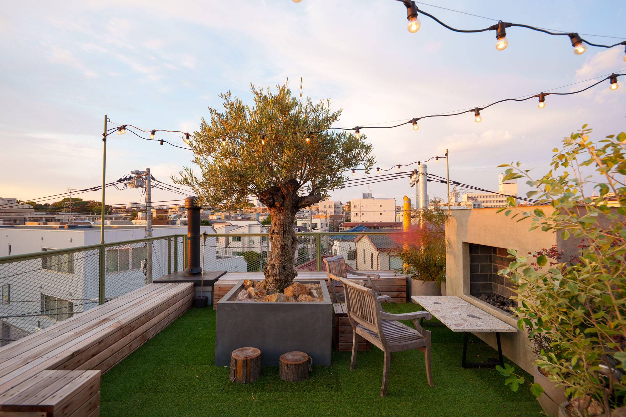 屋上という特等席を使いこなす人もいる。遠くまで抜けた景観を独り占めしながら、薪ストーブの火を眺めて過ごす時間は格別だ。大勢で集まってもゆとりある空間は、友人を招いてのBBQはもちろん、公園に行くような感覚で日向ぼっこを楽しむ、家族の開放的な拠点になっている。